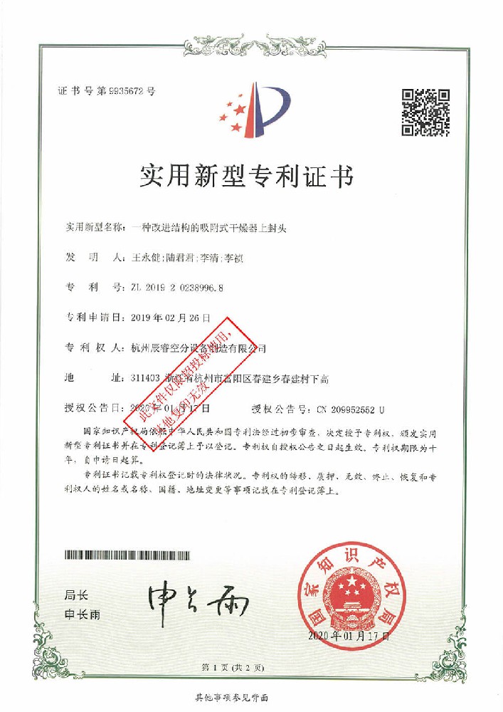 一種改進(jìn)結(jié)構(gòu)的吸附式干燥器上封頭
